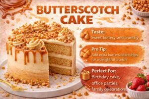 Butterscotch cake is very popular in India. It’s a mix of caramel sweetness and crunchy texture, which is loved by everyone—no matter which age group one belongs to. Butterscotch cake fits in every celebration.