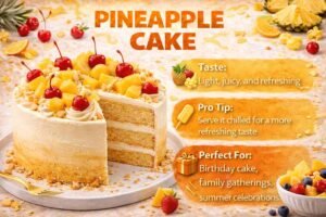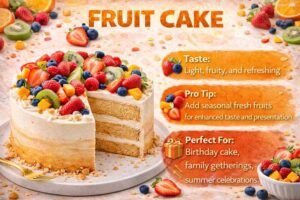 Gulab jamun cake is a fusion dessert that blends Indian tradition with modern baking. It is rich, festive, and perfect for celebrations. This cake is often chosen during festivals and weddings. It adds a desi twist to cake flavours.