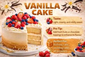 Vanilla cake is one of the classic cake flavours. It is the second most loved cake flavours in India. This cake is simple yet elegant that never losses its charm. Most Indian order vanilla cake for birthday celebrations. Vanilla cake serves as the perfect base for creative designs and toppings.